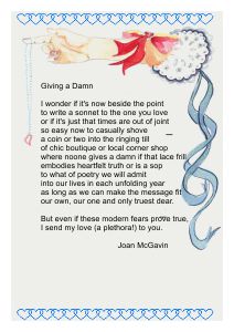 We all turn to poetry at some time in our lives. Even the classical poets wrote just for themselves or for friends at significant times, be they joyful or difficult. No subject out of bounds, no bounds to poets' empathy or imagination. And we generally love a challenge and have a wealth of expertise to be called on. As well as taking commissions to write poems, which Members were invited to submit for, poetry p f published a range of Poem Cards for specific events or Anytime, beginning with a 12 poets Christmas Card set in 2006 and followed by many others, mostly sold through the poetry p f online shop and at events. Several artists were commissioned to produce designs, including Russi Dordi, Carole Humphreys, Martin Parker (Silbercow) and Simon Turvey, and the poets were paid royalties. As at mid-2024, some cards had previously been withdrawn when sold out, and sales, though they never reached great numbers, had significantly diminished and so the cards were removed from public sale but enquiries as to the availability of any last remaining stocks are welcome. Enquiries to Anne Stewart Thank you to all of the poets who took part in this project Anytime Merryn